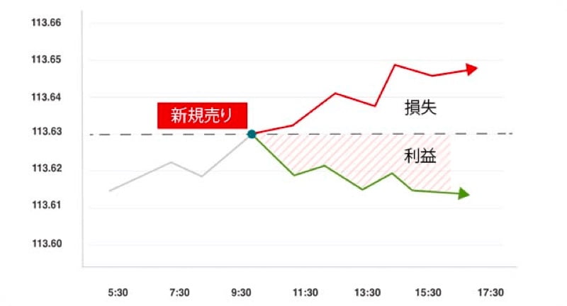 予想通り下落した場合には、下落した分が利益となります。反対に予想に反して上昇してしまった場合には、上昇分が損失となります。