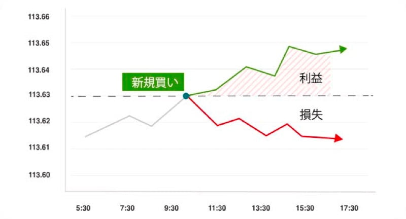 予想通り上昇した場合には、上昇した分が利益となります。反対に予想に反して下落してしまった場合には、下落分が損失となります。