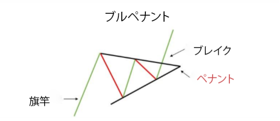ブル(上昇)ペナント(ペナント=旗)は強気の