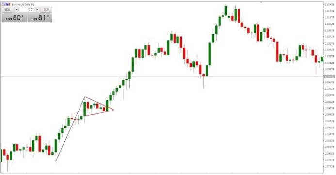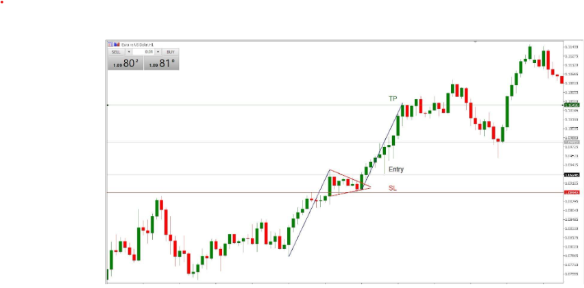 下記の例でわかる通り、ペナントの取引はフラッグの取引と非常に似たプロセスです。
