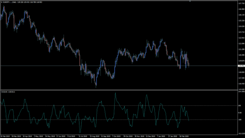 この指標は、価格チャートの下にある専用のウィンドウに表示され、そのゼロラインの上下の100ポイントが一定の基準になります。