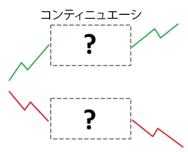 コンティニュエーション(継続)パターンは、保ち合い相場の前と後のトレンドが同じ傾向になる可能性が高いと考えられるパターンのことです。