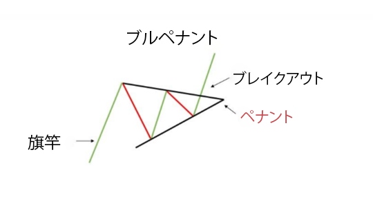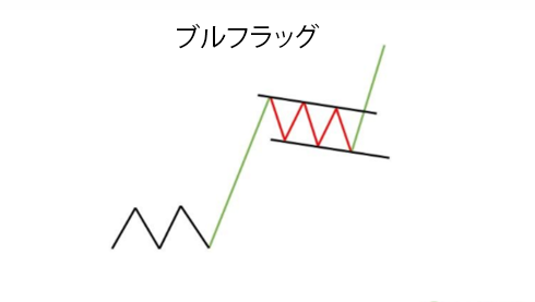 強気のパターンは、強い上昇トレンドの後、値動きが特定のパターン内で保ち合いとなったときに発生します。
