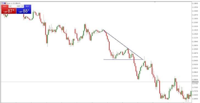下降型トライアングルの最大の長所は、ブレイクアウトが近づいたときに、取引のフォーマットを決めるのに役立つことです。