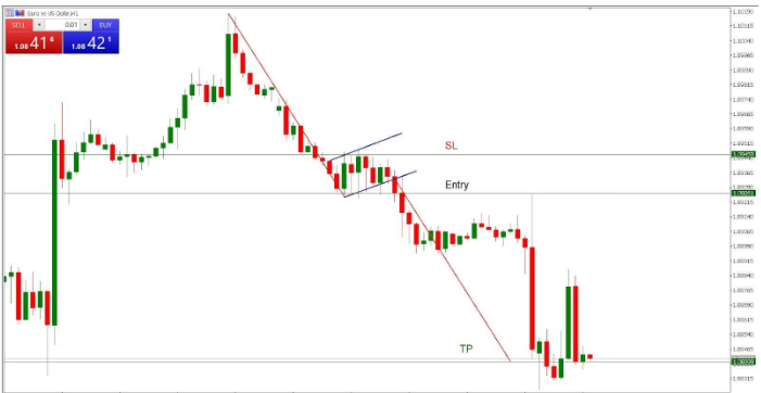 最初に、下降トレンドを特定します。その後、水平のサポートラインを描くために、少なくとも2つの等しい、