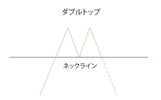 ダブルボトムが「W」の文字に似ているのに対し、ダブルトップは「M」の文字に似ており、高値が2つあるのが特徴です。