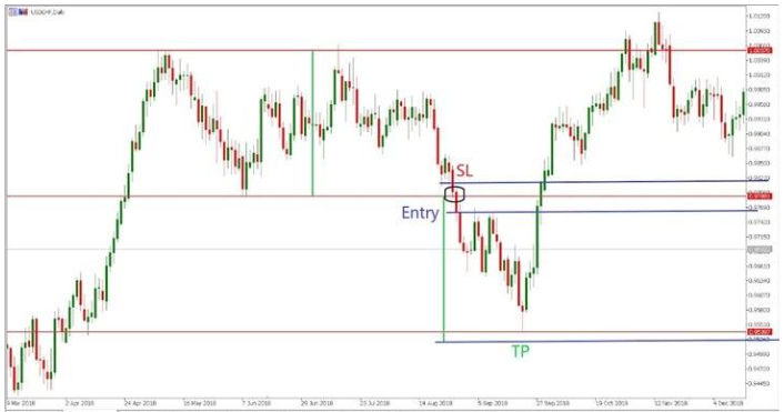 今回のケースでは、米ドル/スイスフランは値動きが下に流れたため、2つ目の選択肢を選ぶことはありませんでした。