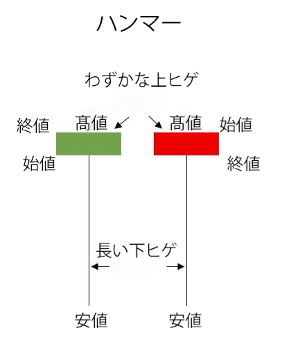 このように、ハンマーは価格の方向が変わる可能性を示します。