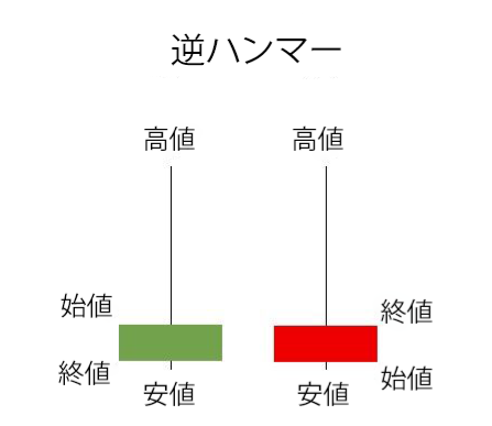 ハンマーと逆ハンマーは、どちらも下降トレンドの終盤に起こる強気のリバーサル・パターンです。