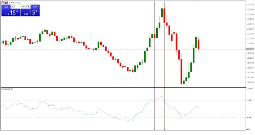 EUR/USDは上昇トレンドの中で取引されていたため、RSIが70以上の買われすぎの領域を超えています。