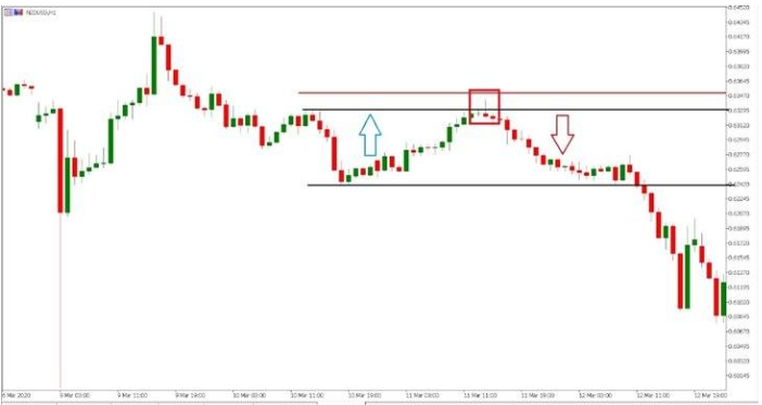 このような理由から、レジスタンスラインのクリアに失敗した後、値動きは下方に反転し、サポートラインまで戻ります。