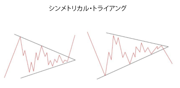 シンメトリカル・トライアングル自体は、上昇と下降それぞれの勢いがともに弱まっていくことで形成されているので、