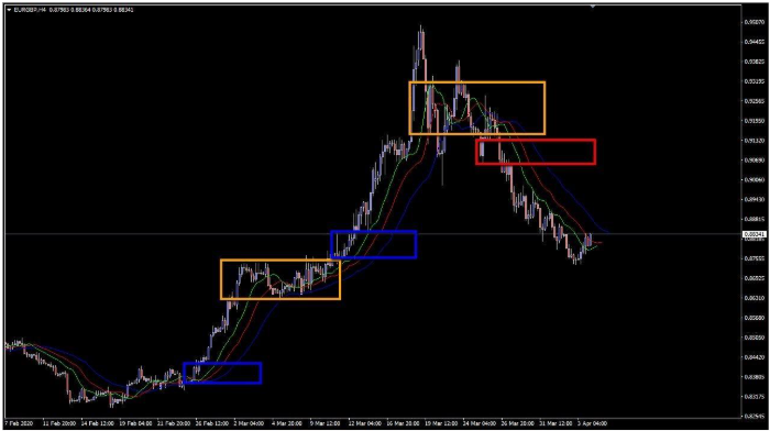顎(青)は他よりもゆっくりと変化し、唇(緑)は指標の中で最も速い移動平均になります。