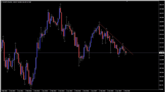 下のチャートを見ると、EUR/JPYペアが下降中にいくつかのフラクタルを形成していることがわかります。