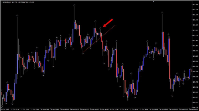 ついに上方突破されたフラクタルがあり、それが買い注文開始のシグナルだったことがわかります。