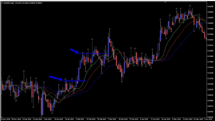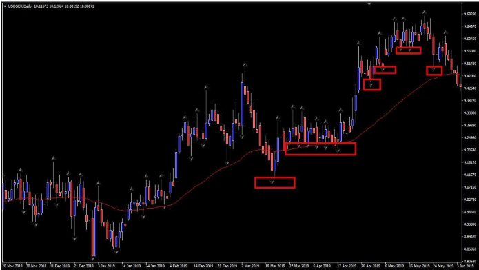 フラクタルを使用する最も簡単な方法は、移動平均線と一緒に使うことです。