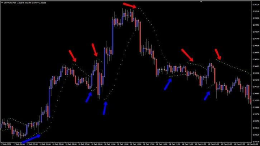 最終的に、市場がその逆指値にヒットすると、指標の方向が反転し、トレーダーに取引方向の切り替えを示します。