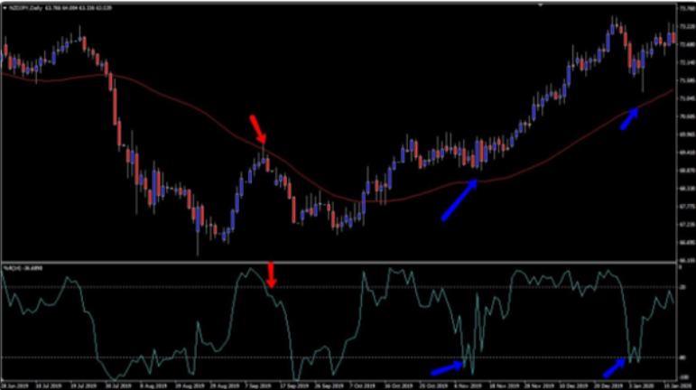 トレンドの中でウィリアムズ%Rを使おうとしている場合、移動平均線を使用して、